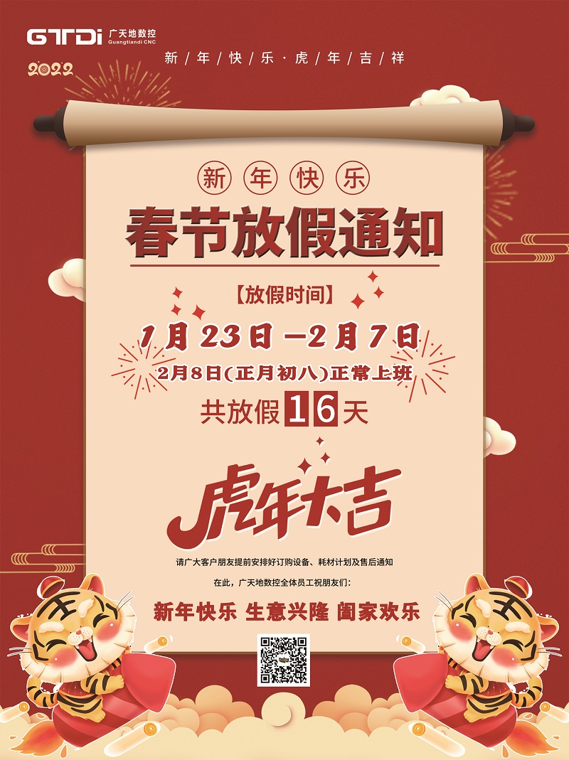 2022年春节将至,首先感谢您在2021年里的鼎力支持和愉快合作,完美电竞数控全体同仁在此给您拜个早年。在新年的一年里,完美电竞将更加努力,为您提供更优质的服务。按照国家春节放假规定结合我司的具体情况,春节放假时间安排如下: